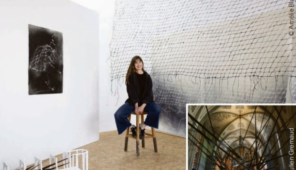 Sur le côté, au sein de la chapelle de Billens, l’artiste a installé une seconde œuvre plus intimiste. Call me Ishmael, d’après le roman d’Herman Melville Moby Dick, consiste en quatre toiles suspendues qui forment une peinture recouverte, en volume, d’un filet. «Le Temps de la fin met en évidence la rupture. Là, on est plus dans le temps de la continuité. Une continuité dans les dimensions, entre les ombres, le volume, la surface.» Là aussi, le temps est représenté par les quotidiens papier qui ont servi à créer le filet suspendu à des jalons noirs. L’église Saint-François, Sophie Bouvier Ausländer la connaît comme une voisine. Mais pour y installer son œuvre, il a fallu la voir sous un autre angle. «L’espace invite vraiment à être impactant, ambitieux. Et en même temps, je garde en tête que pour la plupart des gens qui entrent ici, il y a plus grand que ce que je propose. C’est-àdire leur foi et le Dieu qu’ils viennent prier.» Les deux installations bouleverseront l’espace de la nef, donnant le temps d’observer l’église de 750 ans à travers toutes sortes de dimensions.