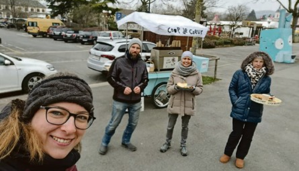 La paroisse de langue allemande de la région du Nord vaudois a mis sur pied – ou plutôt sur roues – ce projet «Coffeebike» il y a maintenant un peu plus d’une année. Avec le but de sortir des murs de l’église pour aller à la rencontre des gens de la ville, nous avons acheté un vélo électrique bien particulier, car celui-ci comporte une machine à café professionnelle qui est installée dessus. Ainsi, nous pouvons distribuer gratuitement une tasse de café accompagnée de pâtisseries et partager notre attention, notre temps et le plus important: l’amour inconditionnel de Dieu.